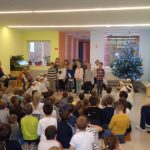 Az alsós gyerekek közösen díszítették fel a karácsonyfánkat. Zenéltek, táncoltak, énekeltek iskolánk azon tanulói, akik a Podmaniczky Alapfokú Művészeti Iskolába járnak. Eközben egyre több és több dísz került a fára. Végül a fenyőfából egy gyönyörű karácsonyfa lett.