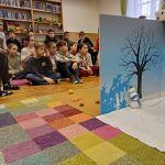 Vadászeszközök is voltak: dupla sörétes puska, vadász szék, vadász táska, és kalap. QR kód beolvasásával állatok hangját is meghallgathattuk. Nagyon tetszettek az évszakörök is. Végül a könyvtáros néni egy Fekete István elbeszélést olvasott el.