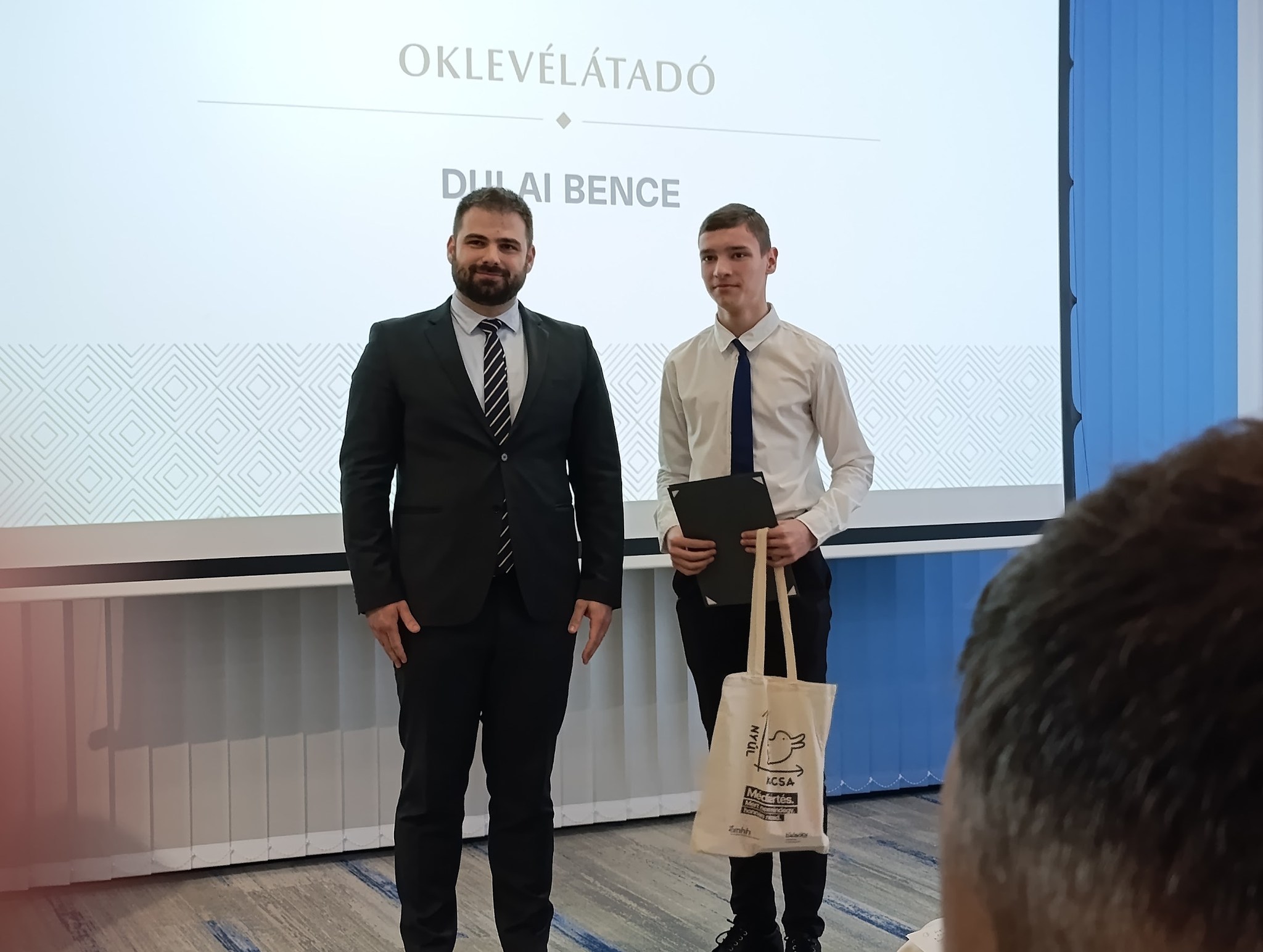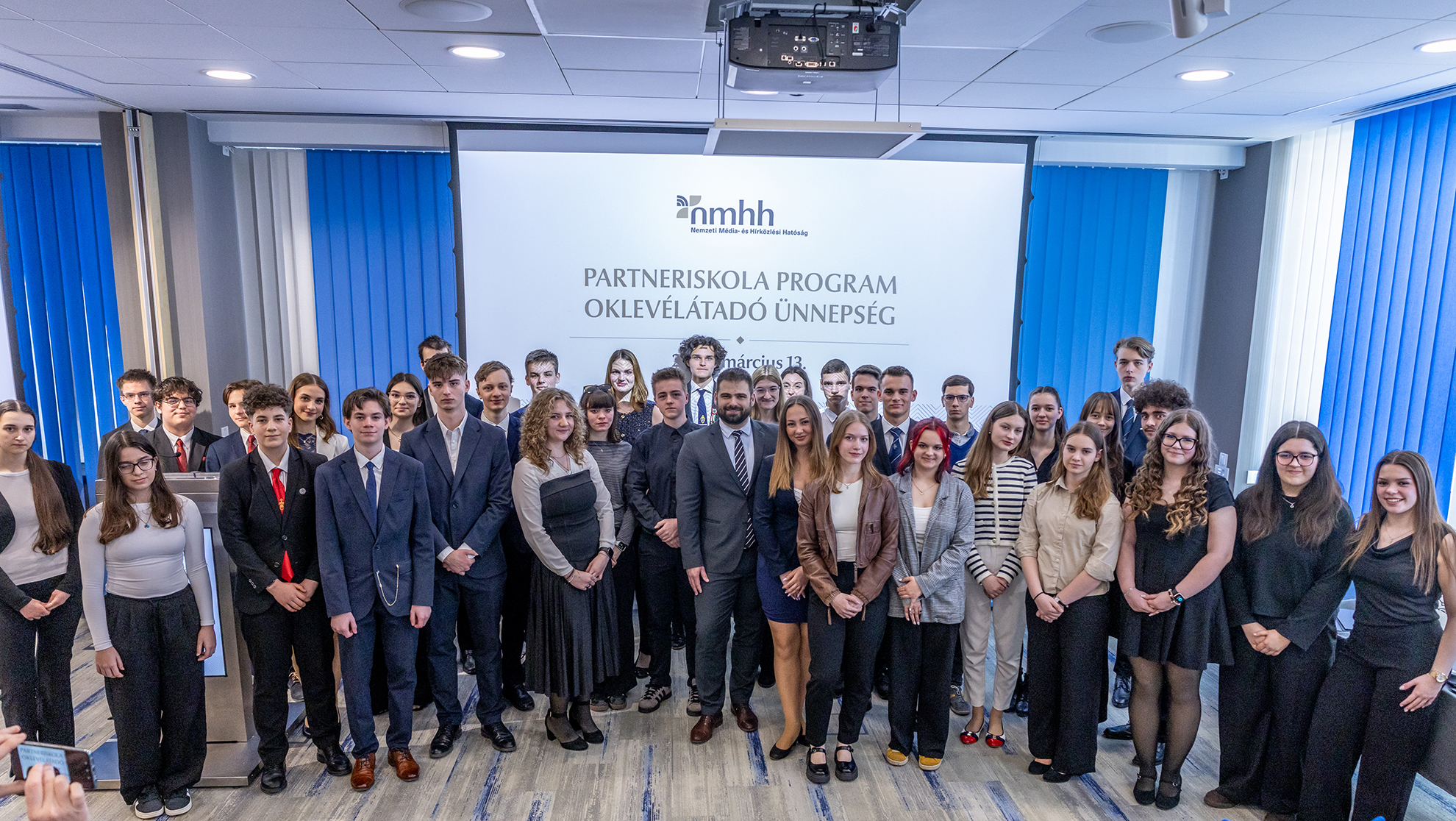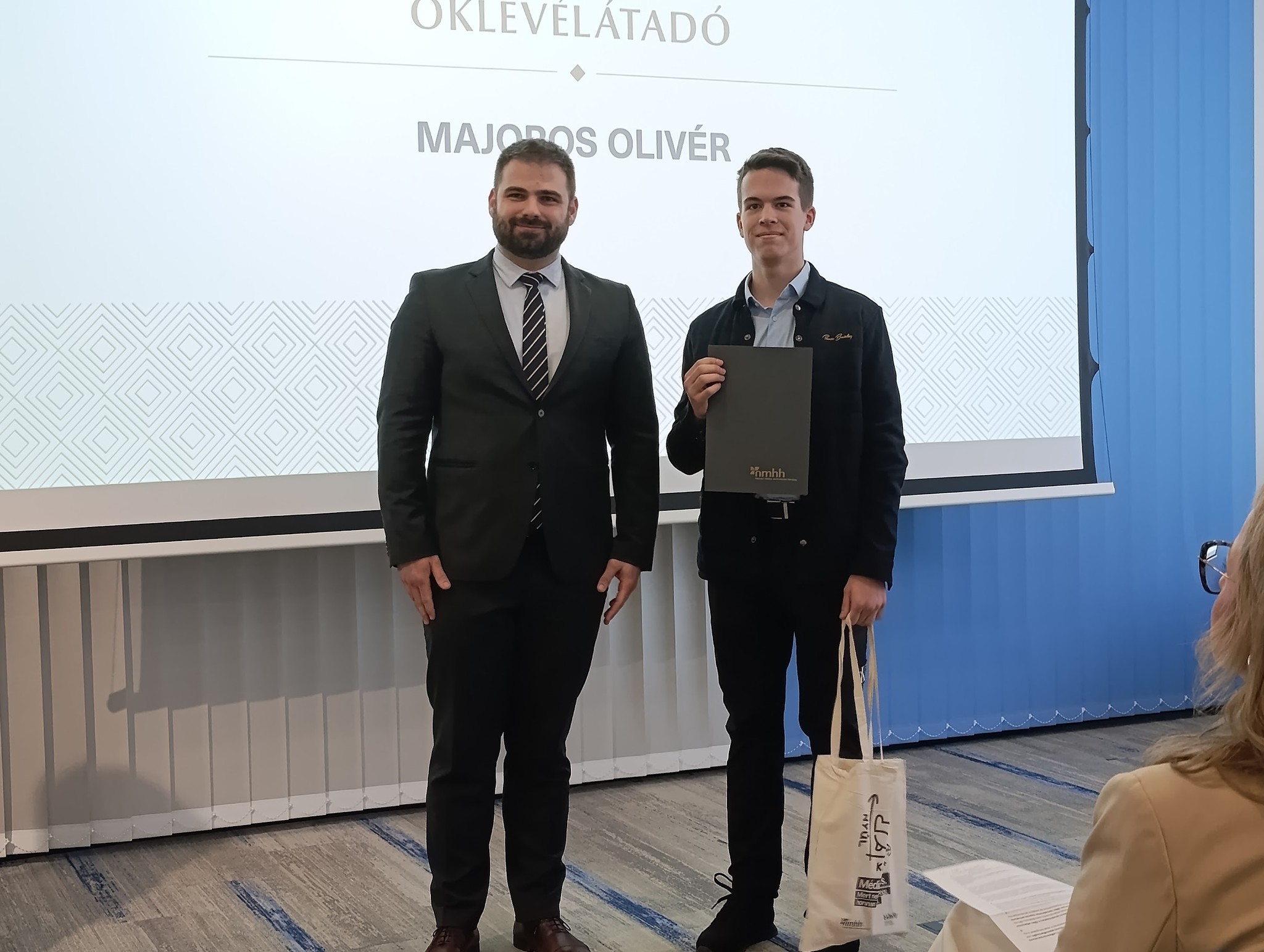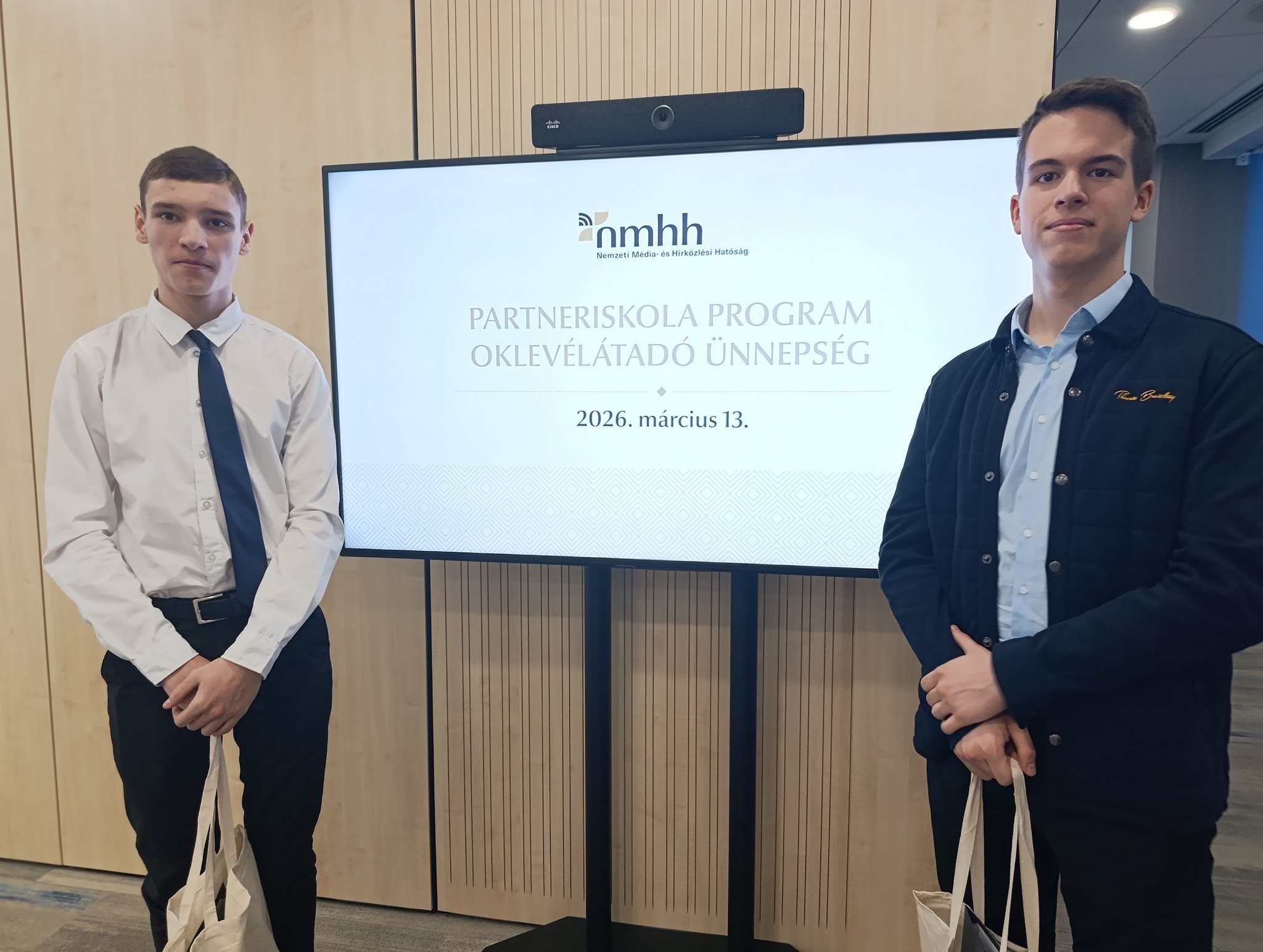 Idén két diákunk, Dulai Bence és Majoros Olivér (mindketten 9.a osztályosok) vehetett át oklevelet és a hozzá tartozó tárgyi jutalmat az NMHH Partneriskola Program keretében Somogyi Ákostól, az NMHH Gyermekvédelmi Főosztályának vezetőjétől. A Nemzeti Média és Hírközlési Hatóság évente jutalmazza azokat a diákokat, akik kiemelkedő munkát végeznek a digitális tartalomkészítés, a médiatudatosság és az online biztonság területén.
