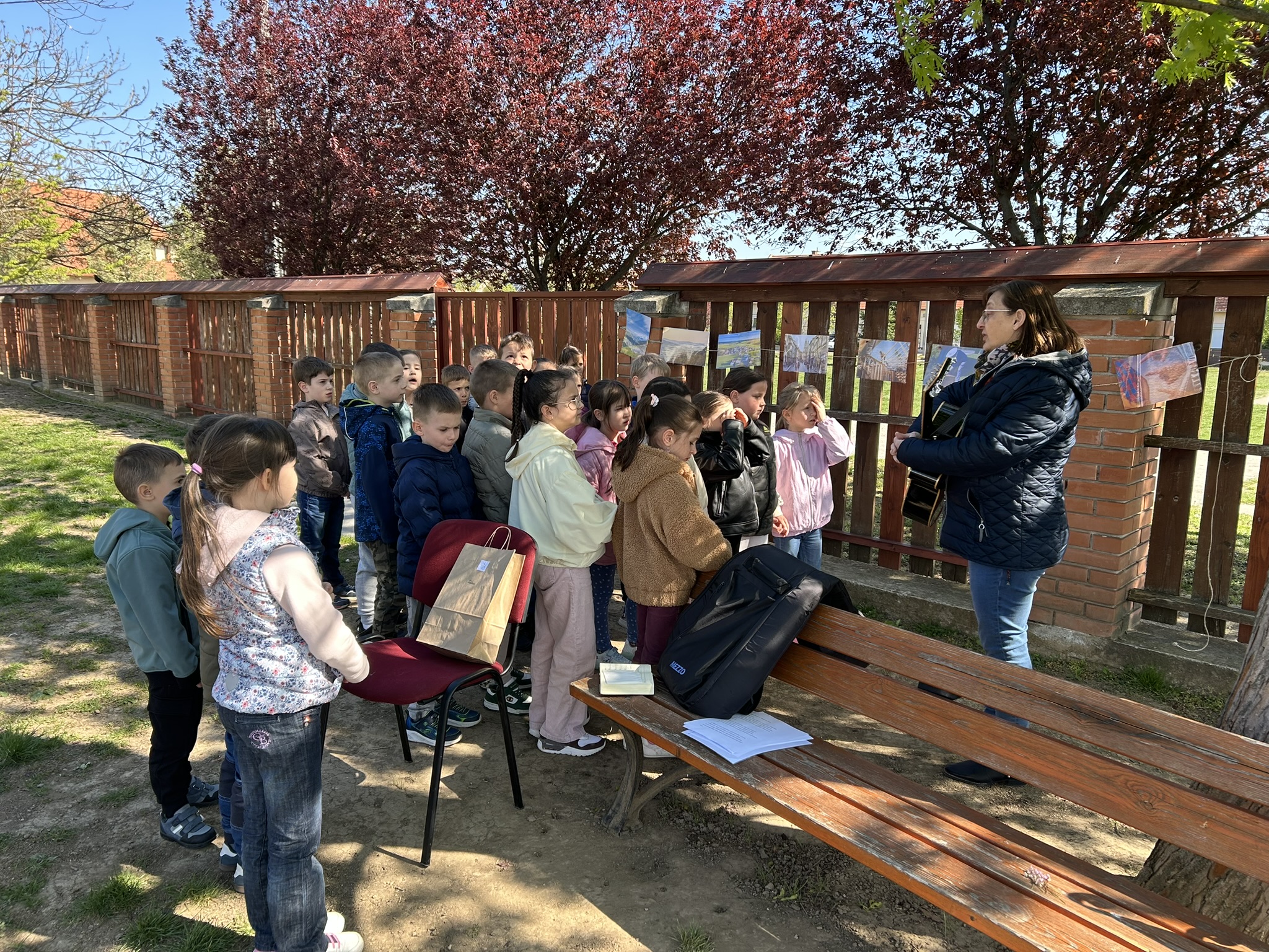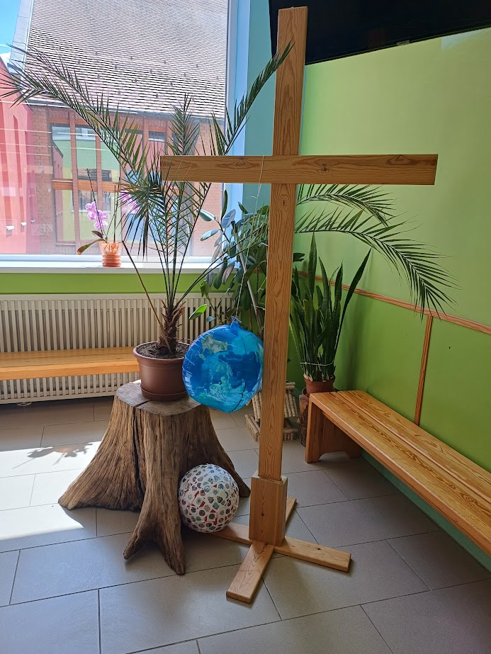 keresése a fűben; virágmagok ültetése, szelektív hulladékgyűjtés és a pöttyös labda matricázása. Az egyik állomáson felcsendült Sillye Jenő szerzeménye a Mennyei Atya szereti a hegyet és a völgyeket is majd a pedagógusok és a tanítványaik közös imádságban adtak