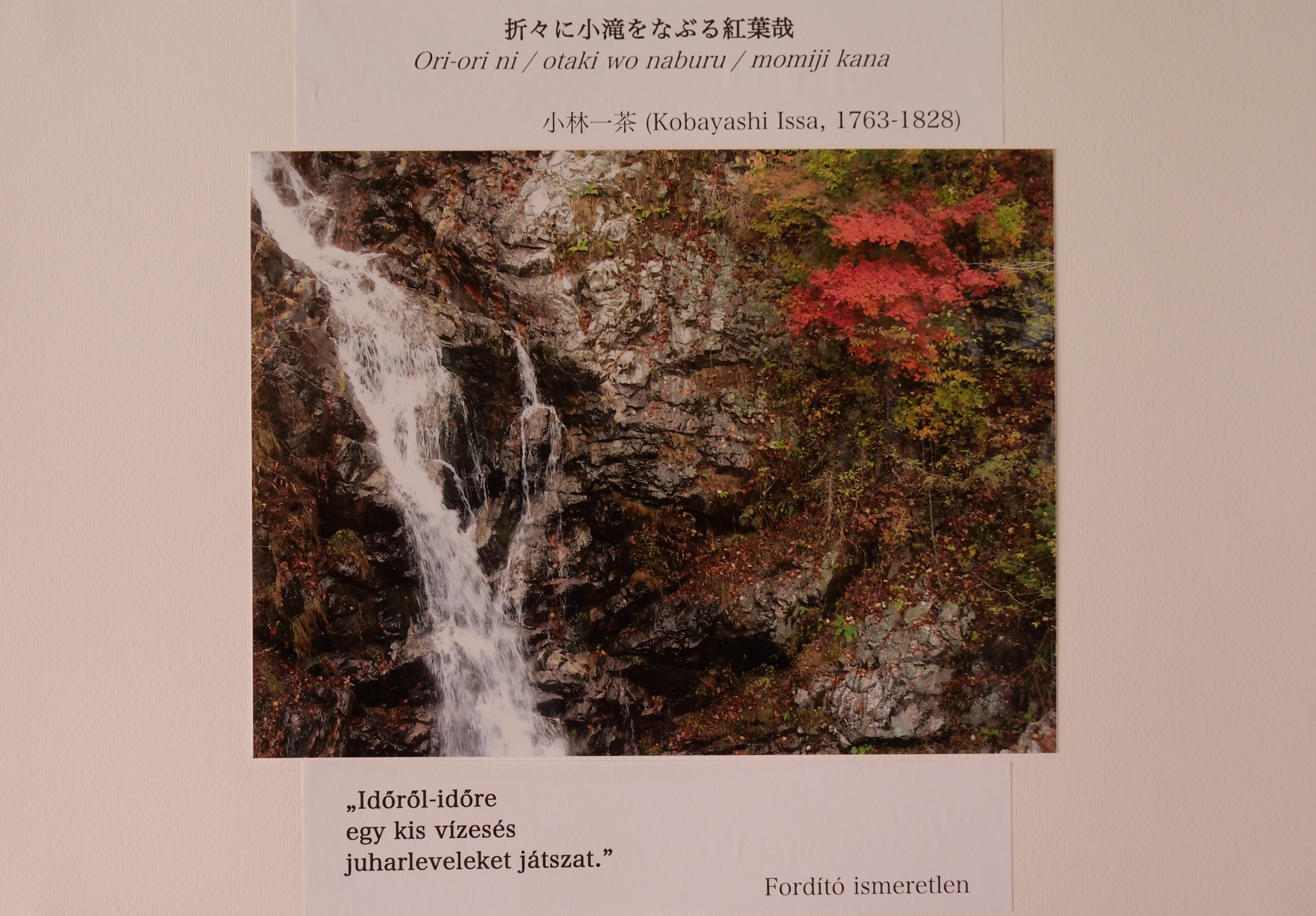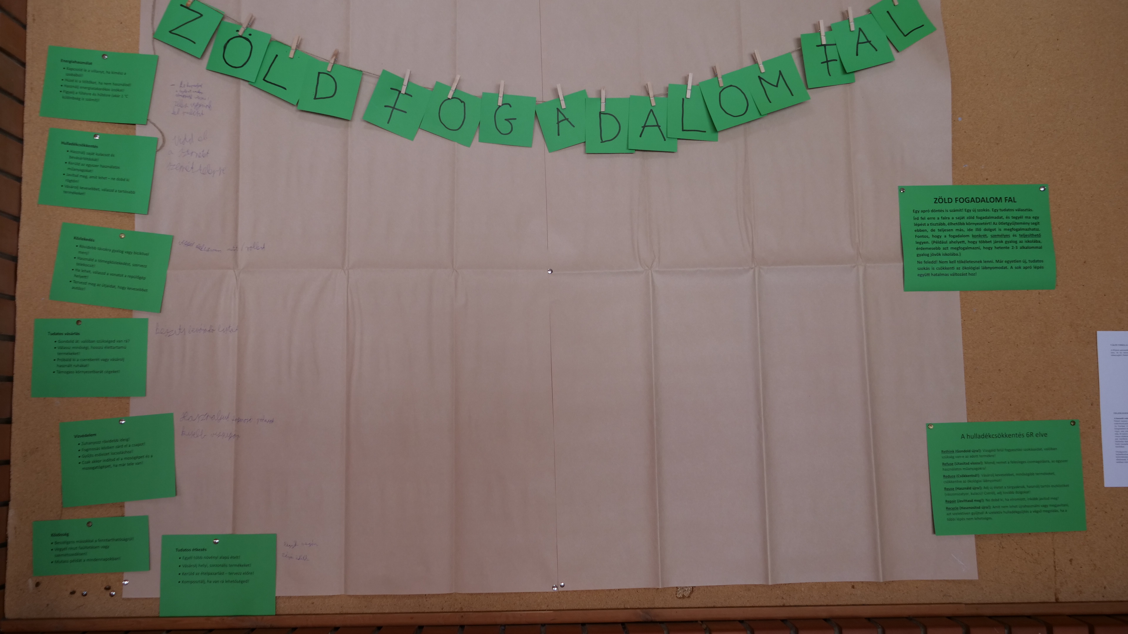 A gimnáziumban az idei Föld napján többféle feladat közül válogathattak a tanulók. A tevékenységeket két gondolatra fűztünk fel: egyfelől a természet veszélyeztetettségét, és az ember felelősségét célozta meg a zöld fogadalom fal, kvízjáték vagy hulladékok nyomtatott képeinek szelektív válogatása. A veszélyek mellett azonban a Föld szépségét is szerettük volna megjeleníteni, ezt japán versekkel (haiku) illusztrált fényképkiállításon keresztül mutattuk be.